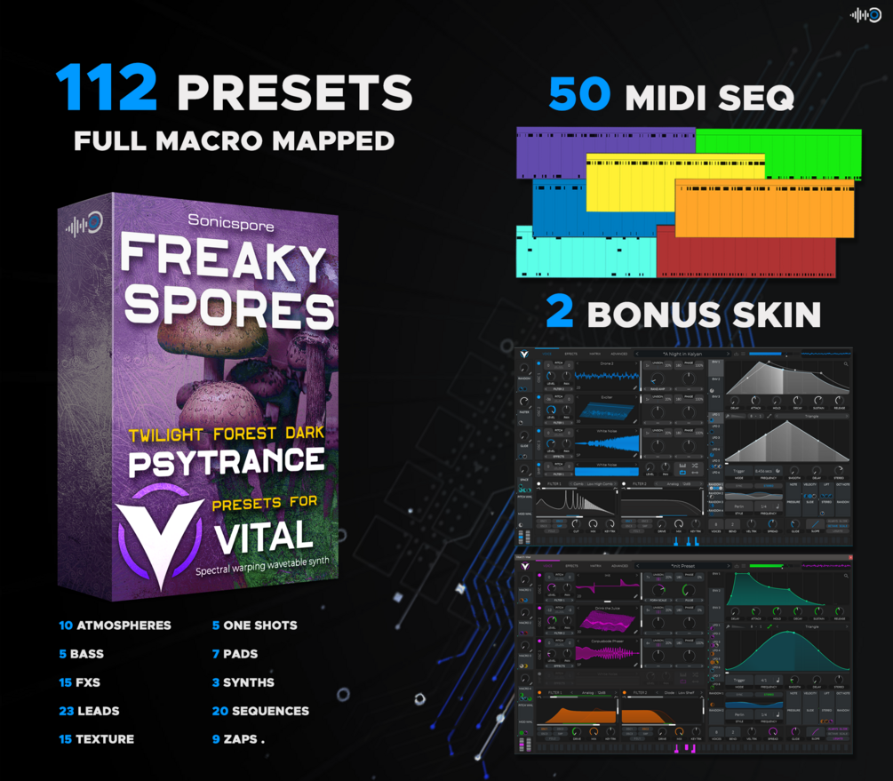 Sonicspore - FREAKY SPORES - Psytrance Vital Presets & Midi