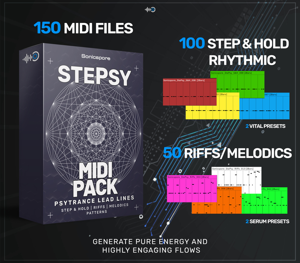 Sonicspore - STEPSY - Psytrance Midi Lead Lines